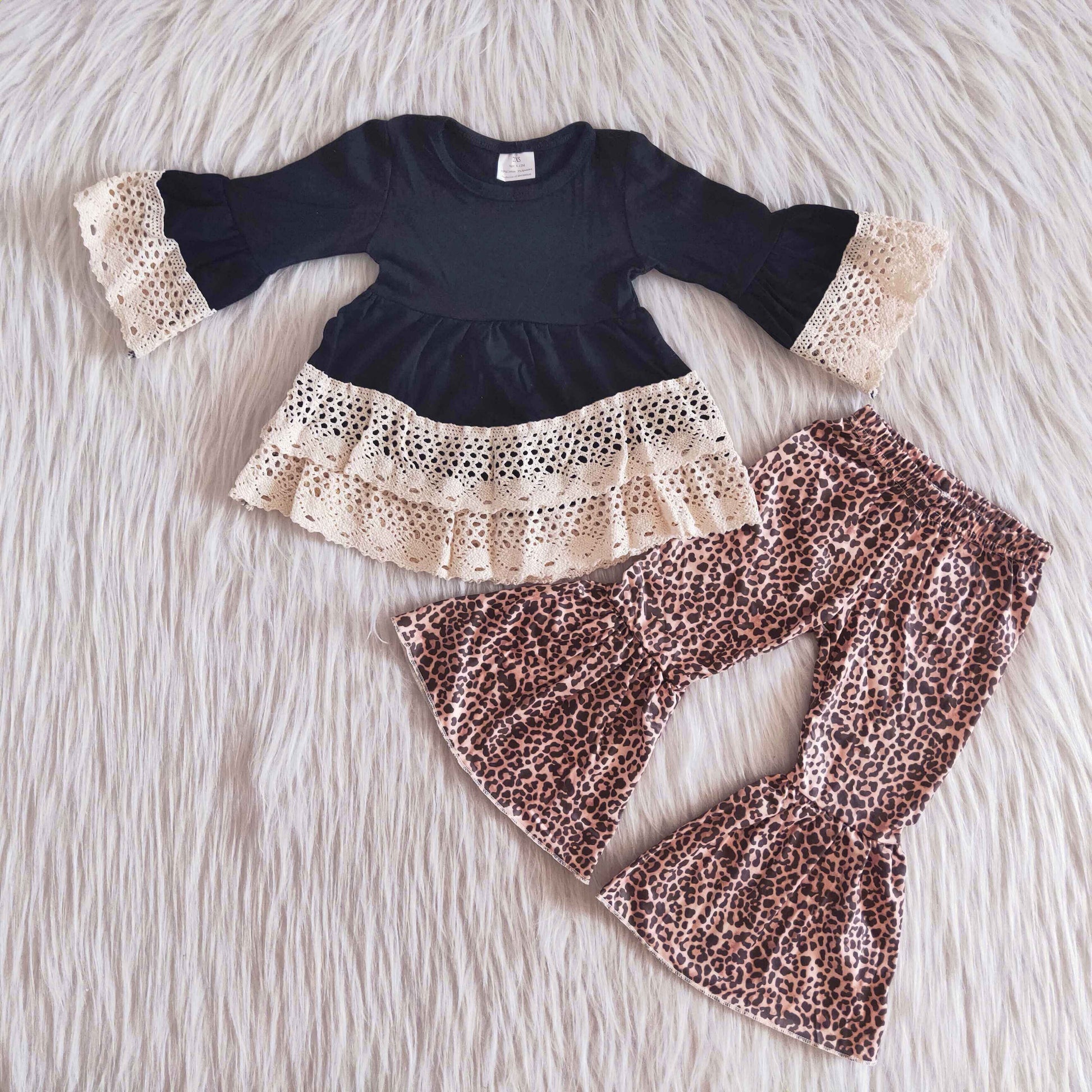 Black lace tunic leopard pants toddler girls set