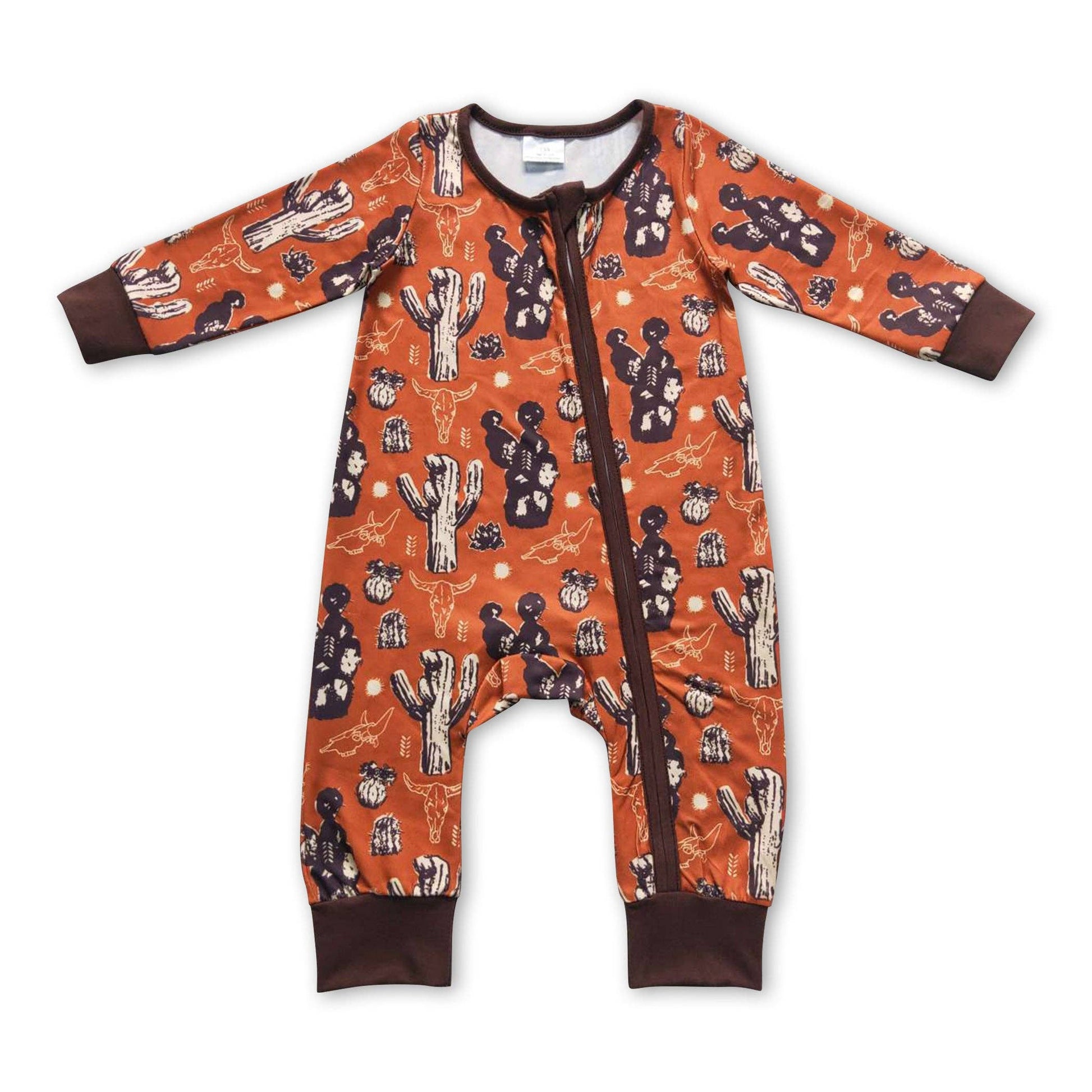 Brown cactus long sleeves baby kids zipper romper