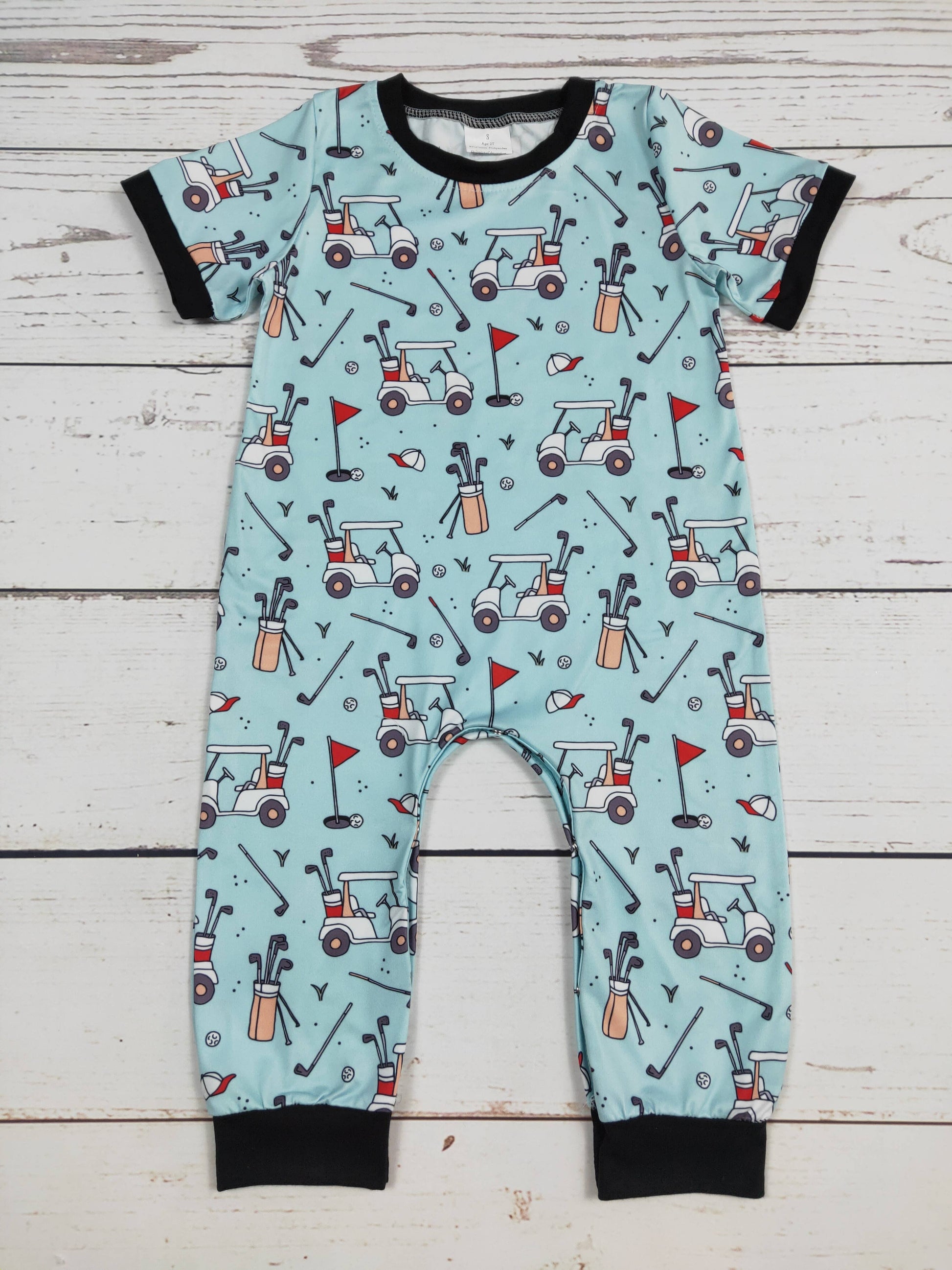 Designed with both style and comfort in mind, the Golf Little Boy Romper is the perfect choice for your little one. Made with high-quality materials, this romper is built to last and provide a comfortable fit for your child. It's a must have for your little one's next outing on the golf course.