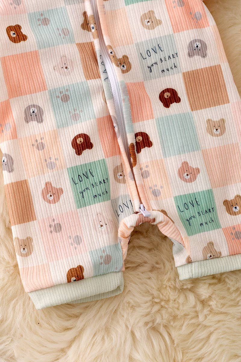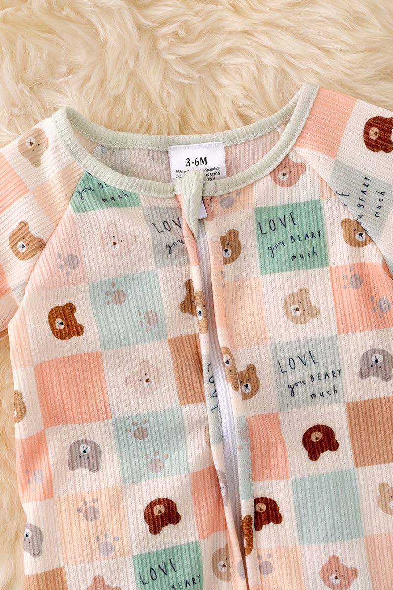 This multi-printed unisex baby romper, also known as the "Love you Beary much" romper, features a cute zip-up design. Made with soft and comfortable materials, it provides easy diaper changes and adds a touch of adorable style to your baby's wardrobe. Perfect for any occasion, this romper is a must-have for any new parent.