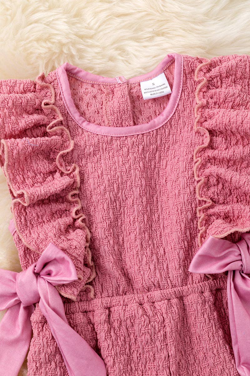 This pink cable knit textured fabric with ruffle hem is perfect for children. It is not only stylish and cute, but also designed to provide comfort and durability. Made from high-quality materials, your child will love wearing it for any occasion.