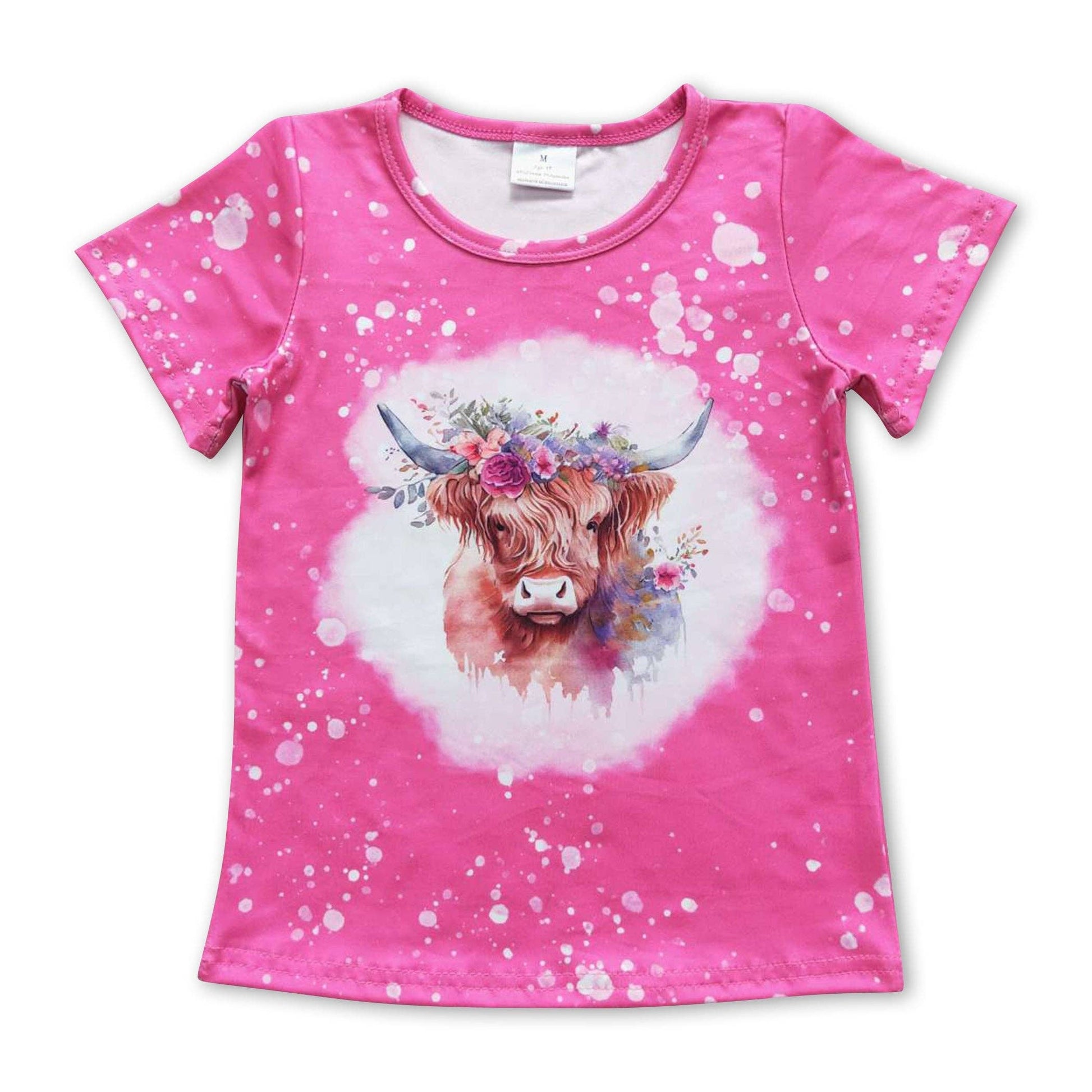 Pink floral highland cow short sleeve shirt