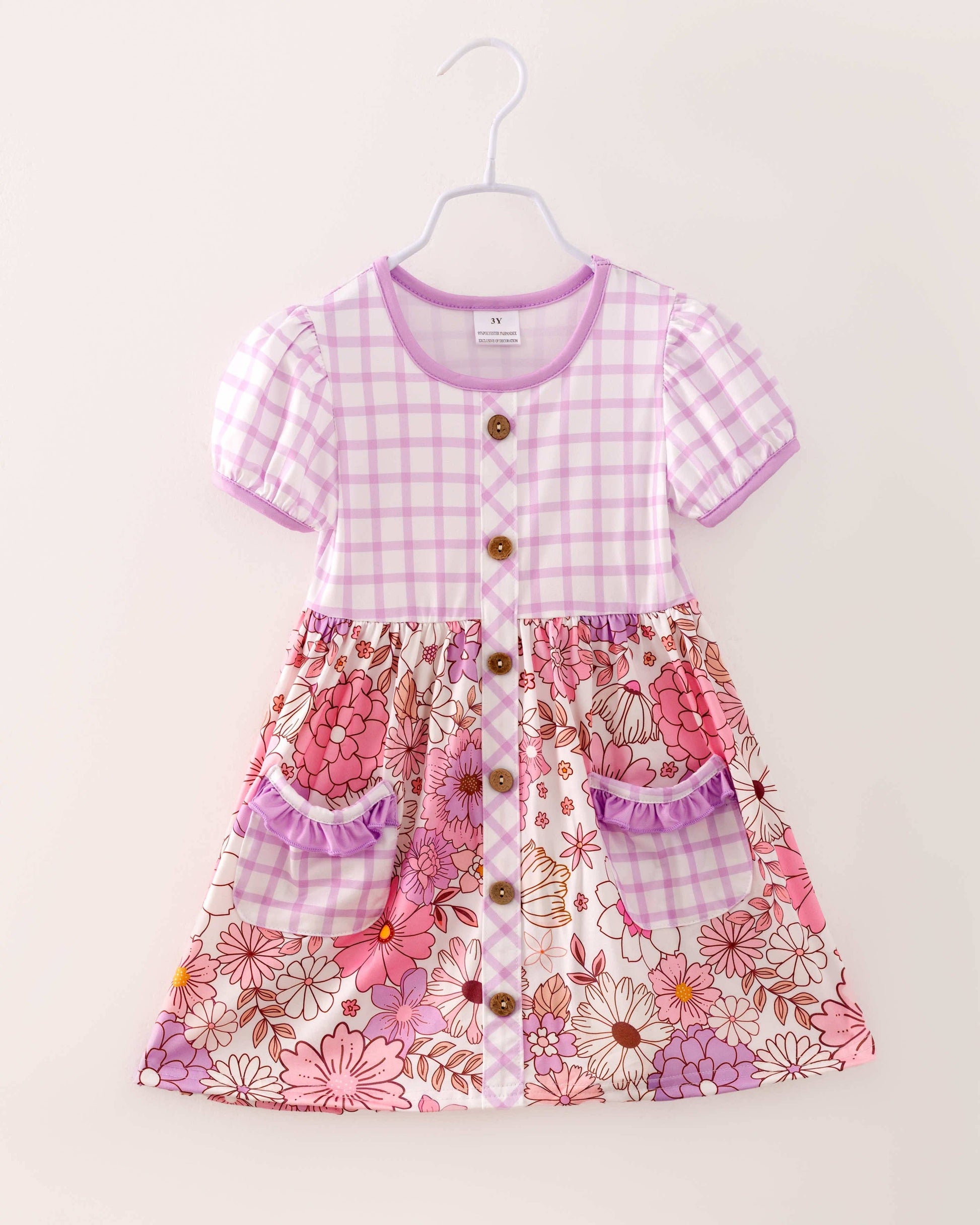 Pink/Purple Plaid Flower Pocket Girl Dress