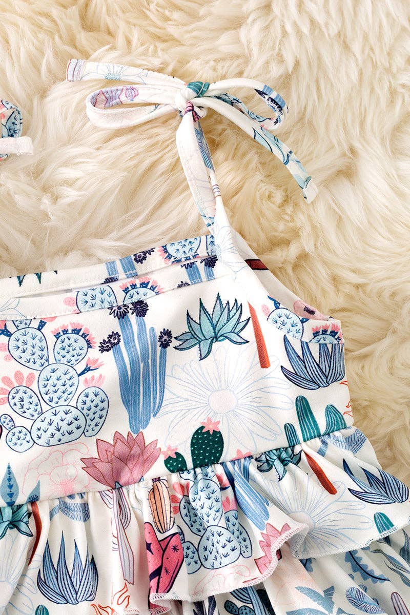 This western printed 3 layer baby onesie with snaps is both stylish and functional. The layer ruffle and spaghetti straps add a touch of western charm while the snaps make diaper changes a breeze. Made with high quality materials, this onesie is perfect for any little cowgirl.