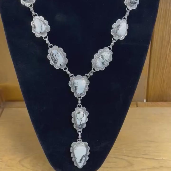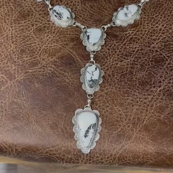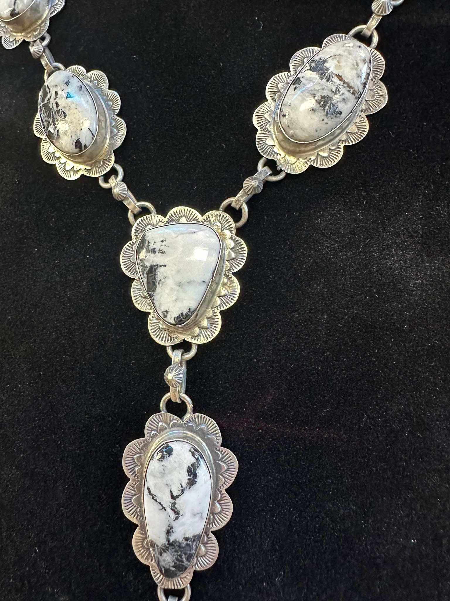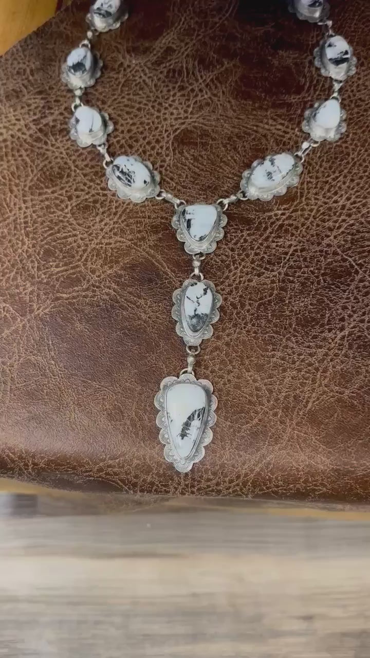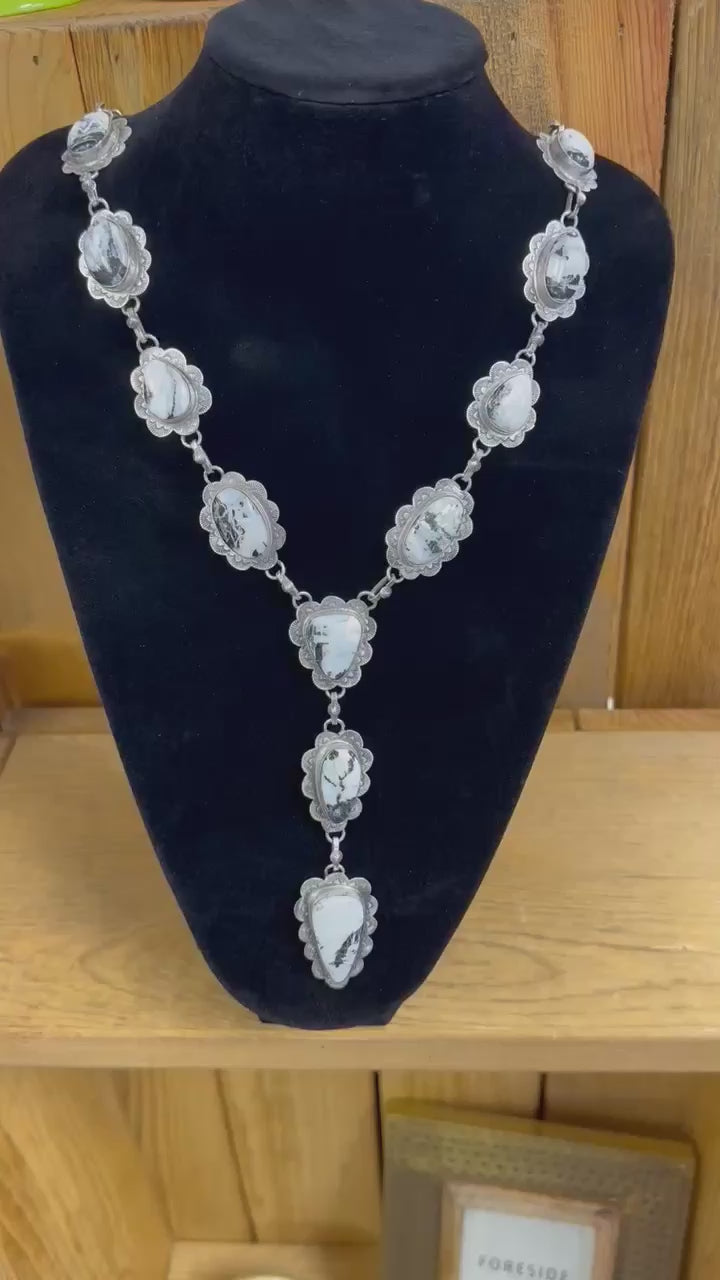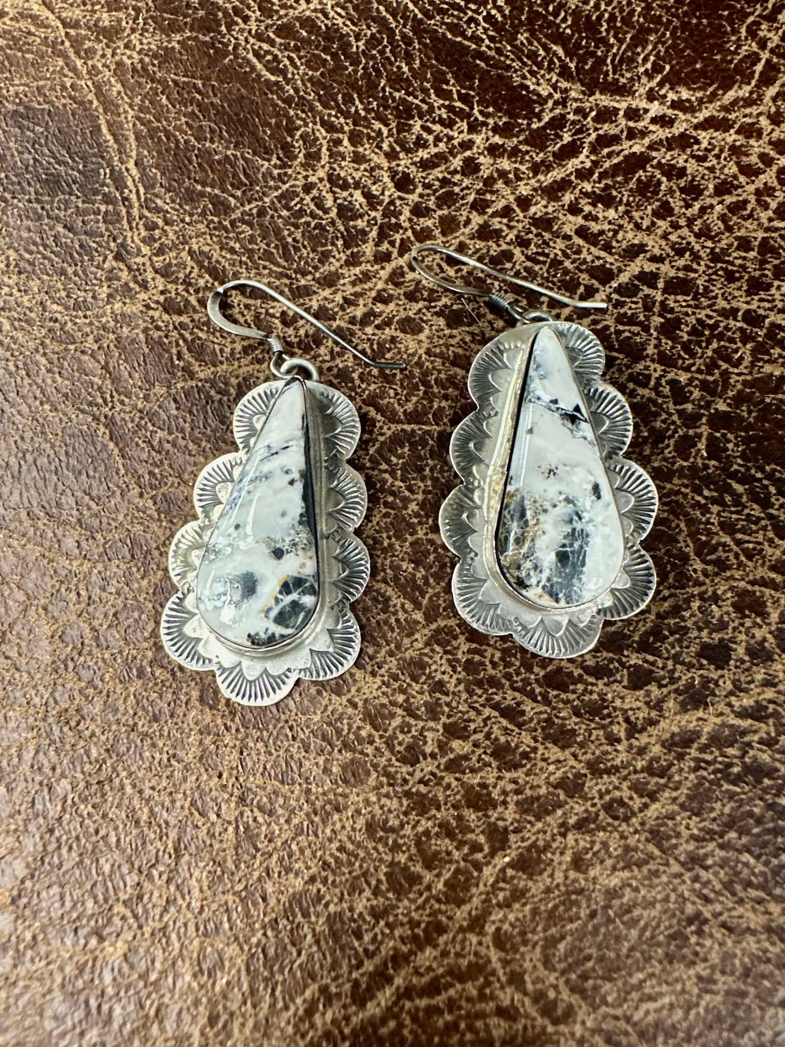 This classy set is sure to turn heads. White Buffalo goes with any color so it's easy to style and wear. This set is stamped and artist signed. It's a piece that becomes a family heirloom.